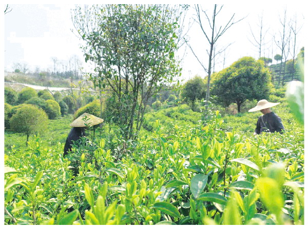 ▲五通茶场清明前正是采茶好时候。 于荣飞 摄