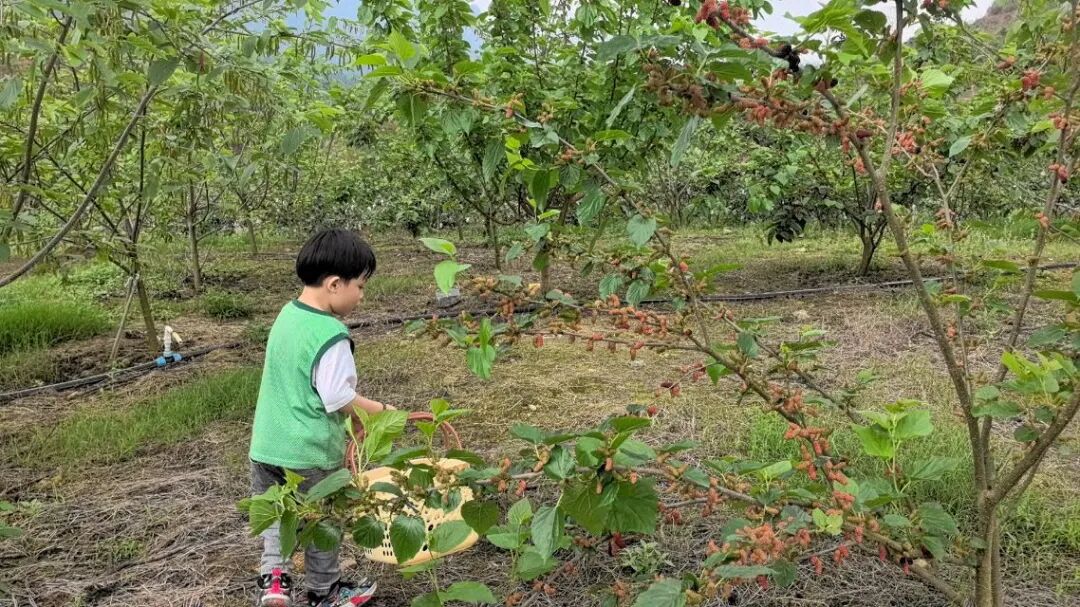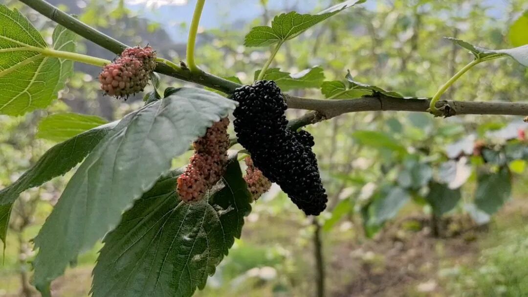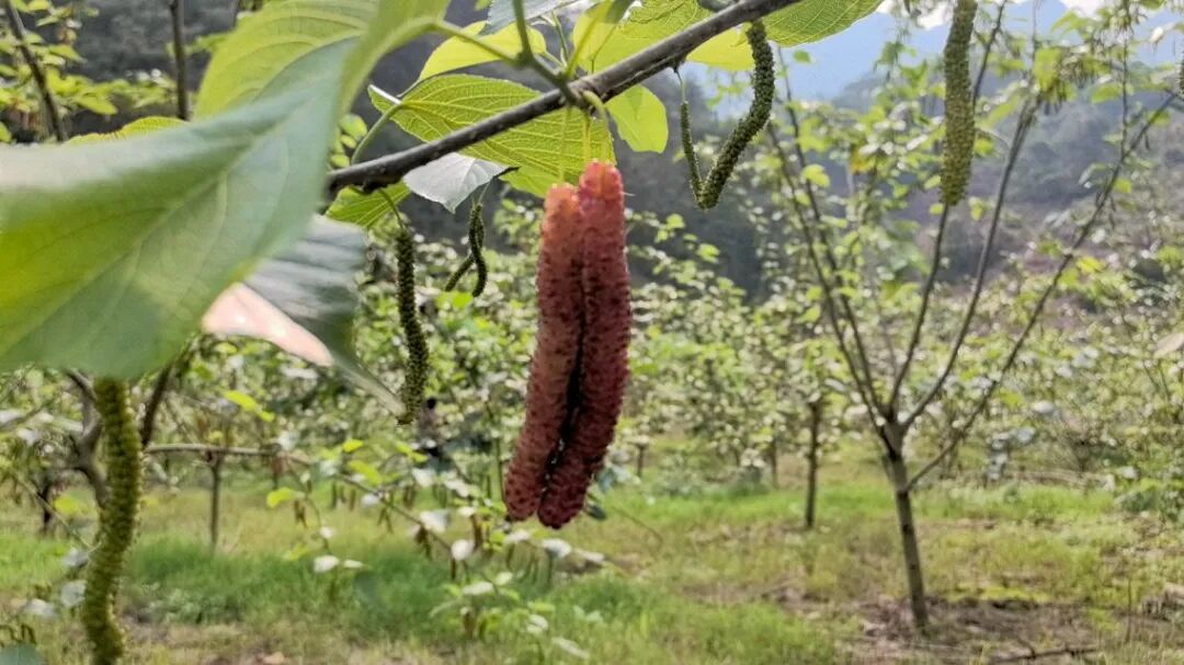 在官成镇葫芦坪的桑果园内,春色满园。奶白色、淡紫色、暗红色等色彩缤纷、形状各异的桑葚缀满枝头,颗颗饱满紧实,令人垂涎欲滴。在郁郁葱葱的桑树下,果农、游客手提小篮穿梭其中,忙着采摘。空气中弥漫着桑果成熟后的果香,游客们一边采摘一边品尝,体验着乡村游的快乐。