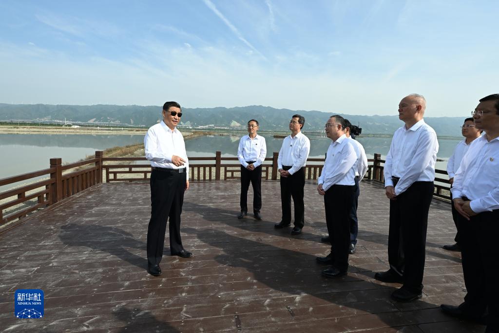 5月16日下午,中共中央总书记、国家主席、中央军委主席习近平在前往陕西西安主持中国-中亚峰会途中,在山西运城盐湖考察。新华社记者 谢环驰 摄
